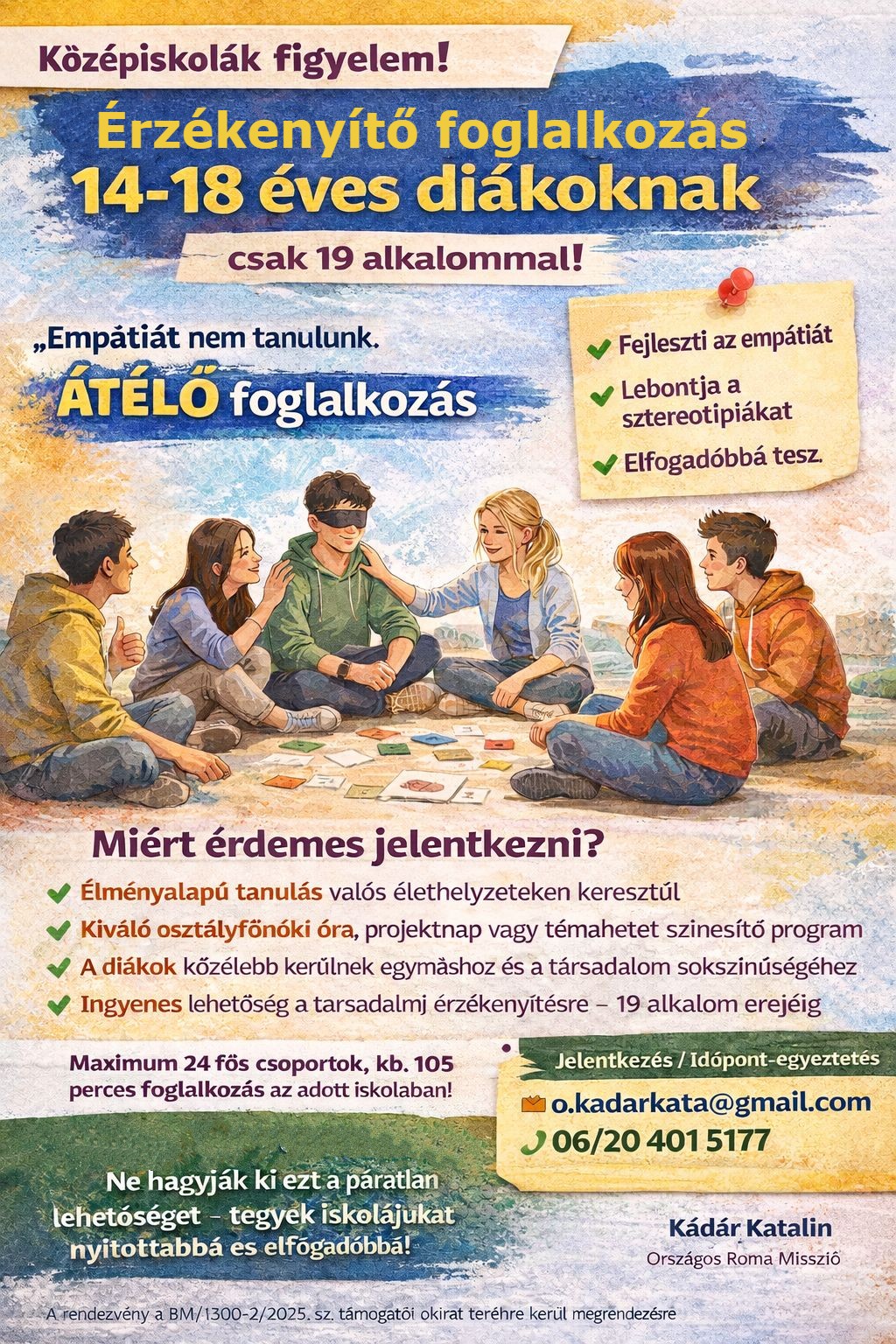 ✨ Ingyenes érzékenyítő foglalkozás 14–18 éves diákoknak – csak 19 alkalommal!
