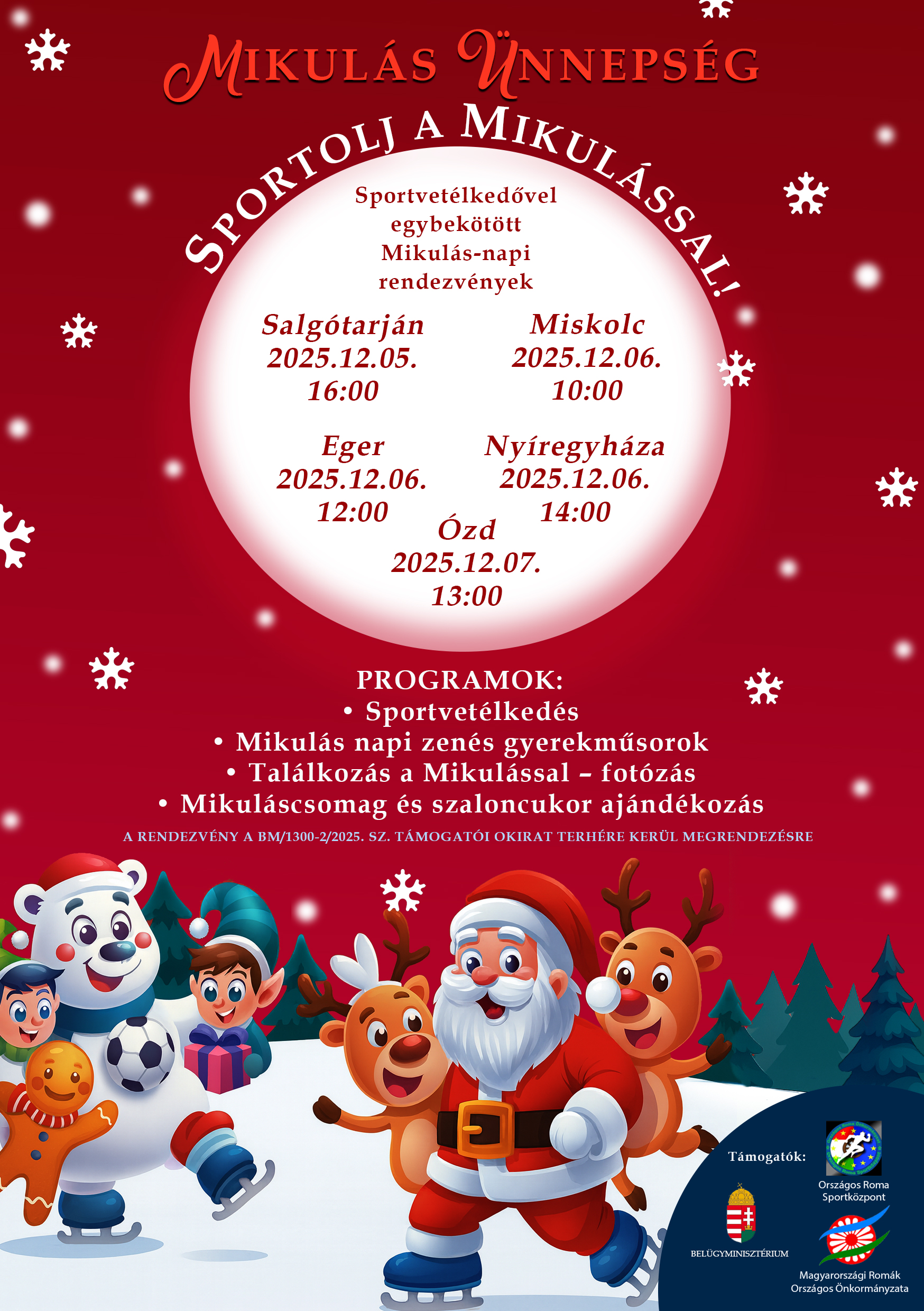Tisztelettel meghívjuk Önt és családját a „Sportolj a Mikulással!” sportvetélkedővel egybekötött Mikulás-napi rendezvénysorozatra.