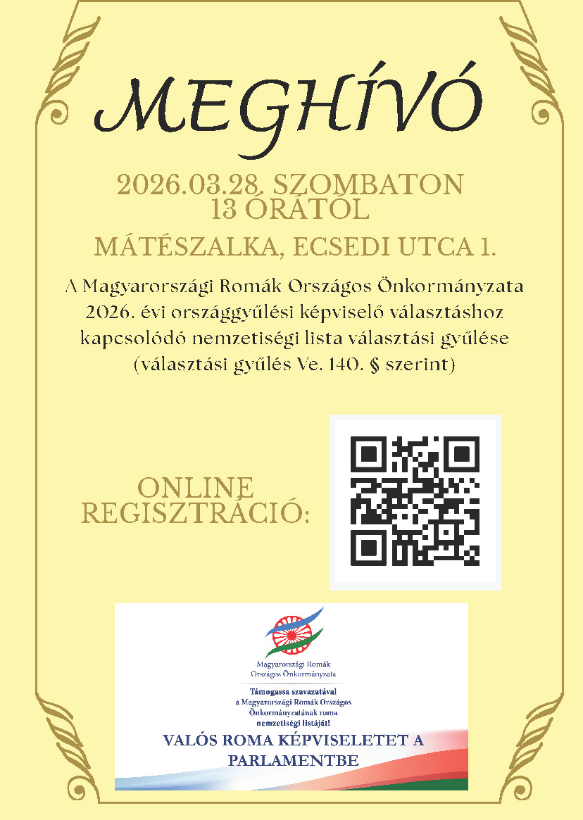 Meghívó – Választási gyűlésre – Mátészalka 3 hours ezelőtt Országos Roma Önkormányzat Hivatala 13 Megtekintés Megosztás Facebook