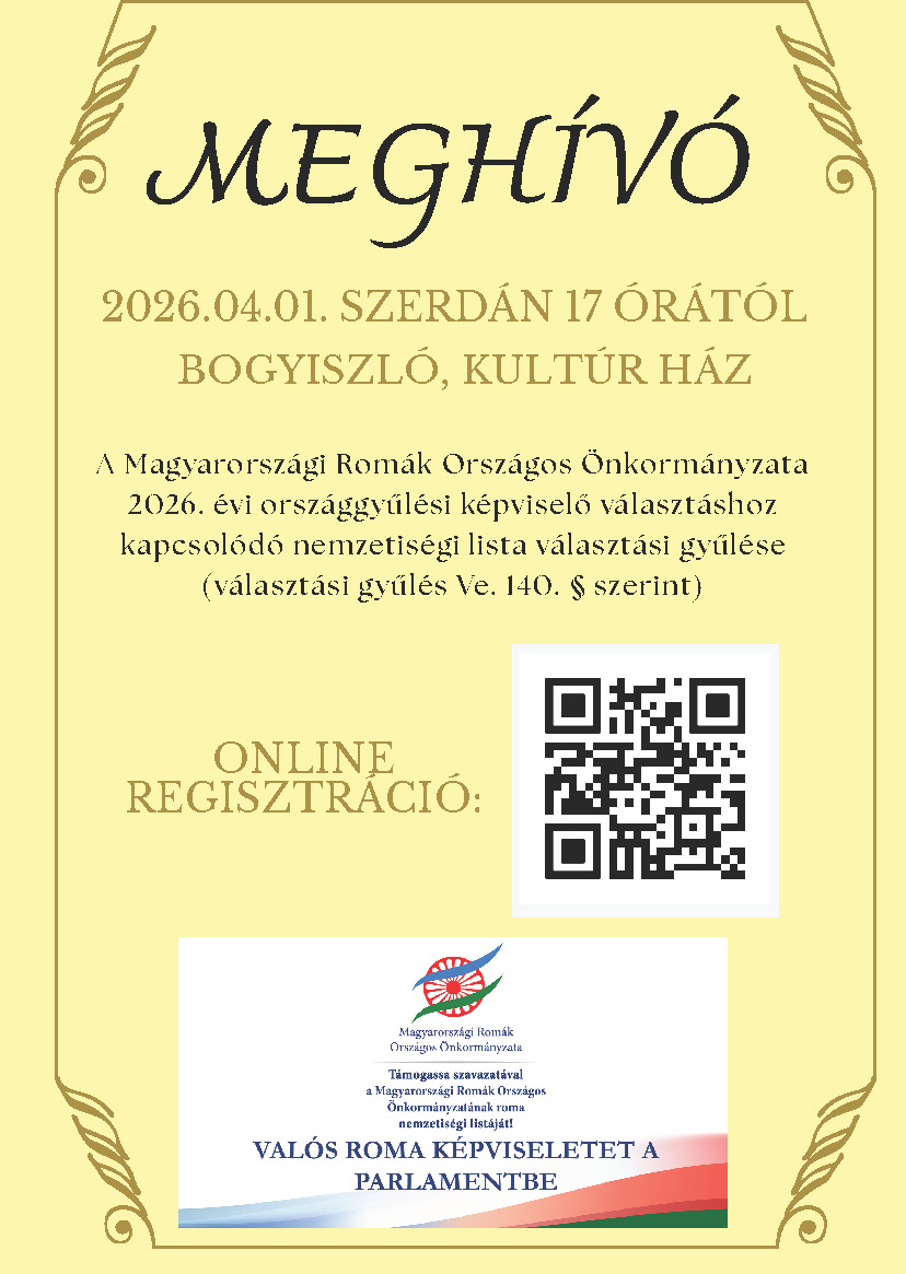 Meghívó – Választási gyűlésre – Bogyiszló 2 hours ezelőtt Országos Roma Önkormányzat Hivatala 9 Megtekintés Megosztás Facebook
