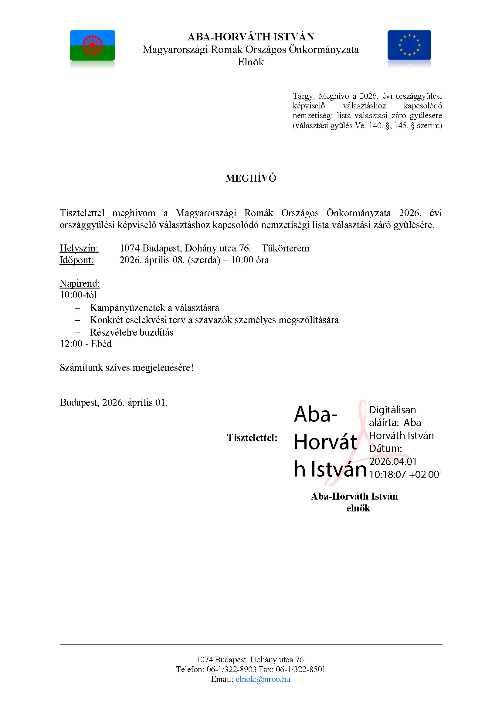 M E G H Í V Ó – Választási záró gyűlésre – 2026.04.08 2 hours ezelőtt Országos Roma Önkormányzat Hivatala 11 Megtekintés Megosztás Facebook