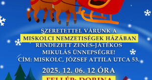 Zenés-játékos Mikulás Ünnepség Miskolcon, a Miskolci Nemzetiségek Házában!Mindenkit szeretettel várunk, sztárfellépőnk: DORINA A belépés ingyenes, minden kedves résztvevőnk mikuláscsomagot kap! 2025. dec. 06. 12 óraMiskolc, József Attila utca 53.